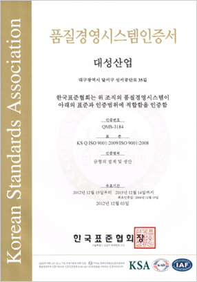 품질경영시스템 ISO9001 인증서 발행처 : 한국표준협회 |